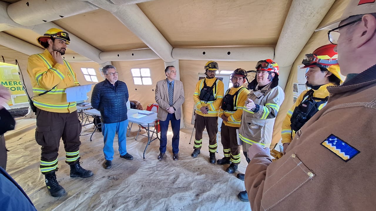 “Este ejercicio consiste en una simulación de un incendio que afectaría a un sector cercano, aledaño a la ciudad de Porvenir, un sector que hoy día se encuentra con muchas parcelas, con alta población y se simula que este incendio amenazaría estas instalaciones, además de infraestructuras críticas”, detalló René Cifuentes, Jefe del Departamento de Protección contra Incendios Forestales de CONAF.